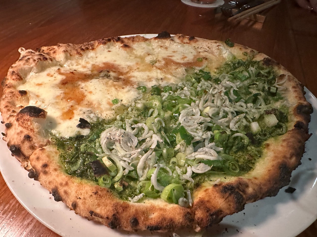 夜は「儘(MAMA)」で、人気No.1の「九条ネギとしらすのピザ」をいただきました。
