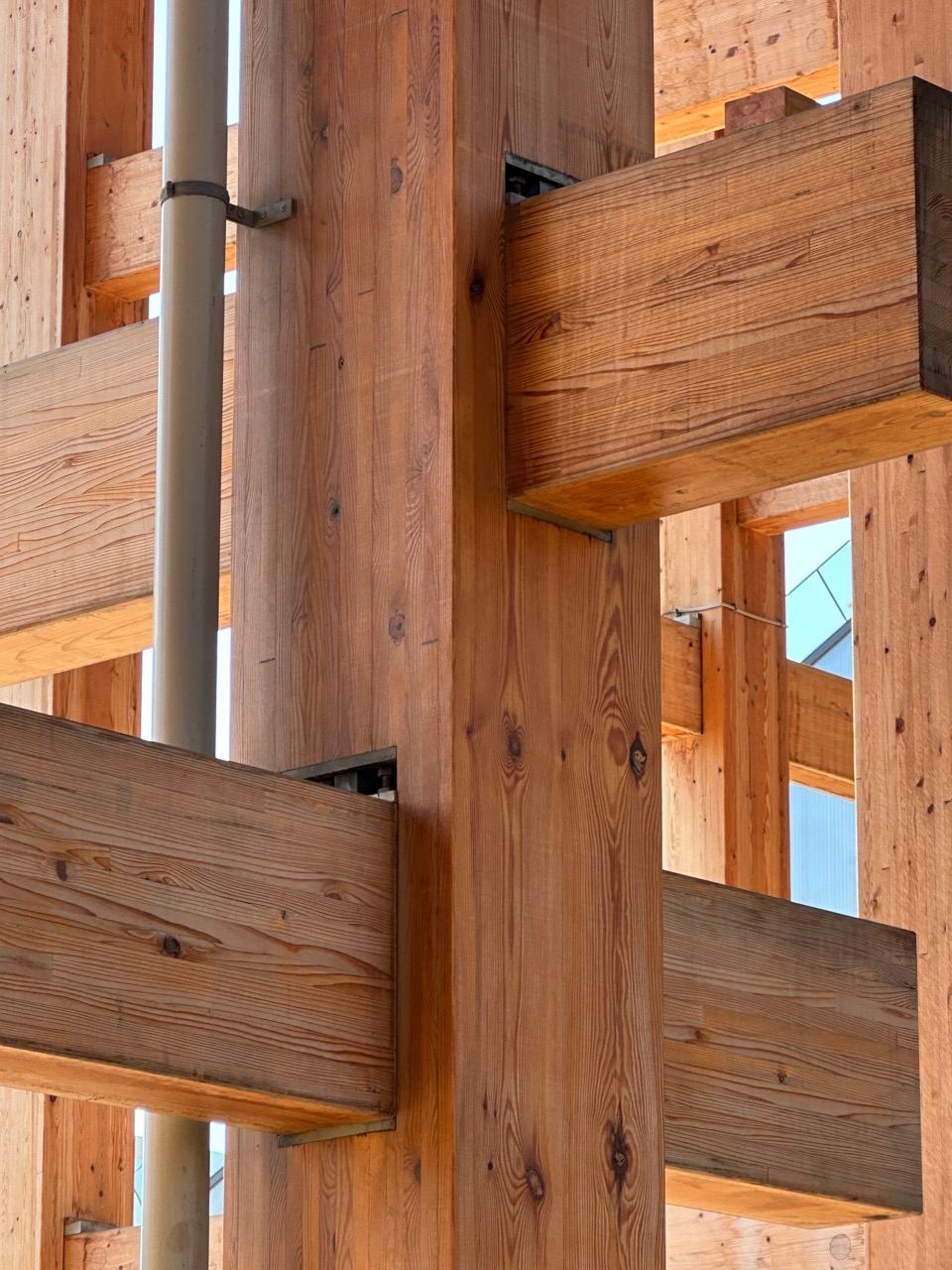 竹中工務店さんは竹中大工道具館を持つだけに、中抜きには大工仕事を意識したくさびを使われています。