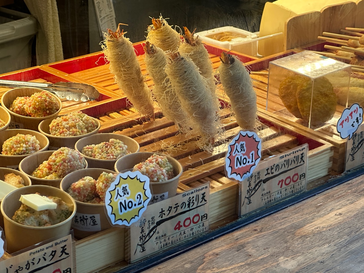 海老のパリパリ天は定番で、大きなケーキ屋さんに寄ります。