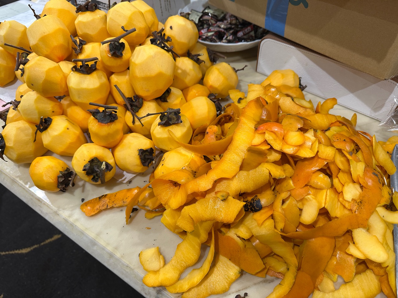 冷蔵庫で保存していた渋柿を吊るし柿に。