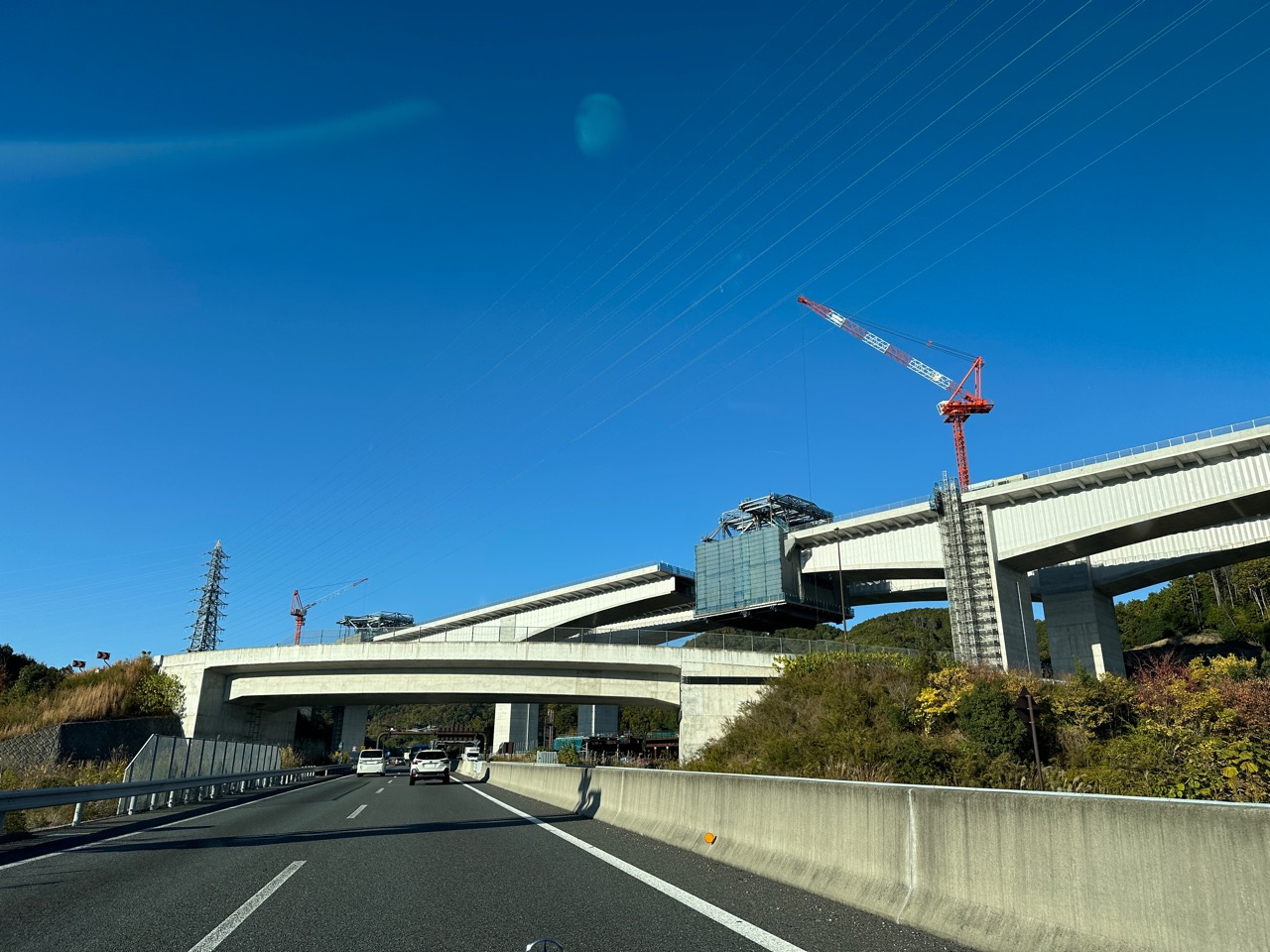 昨日、三重の現場へ行きましたが、新名神高速道路 高槻JCT手前の高架もあと少しで繋がりそうです。