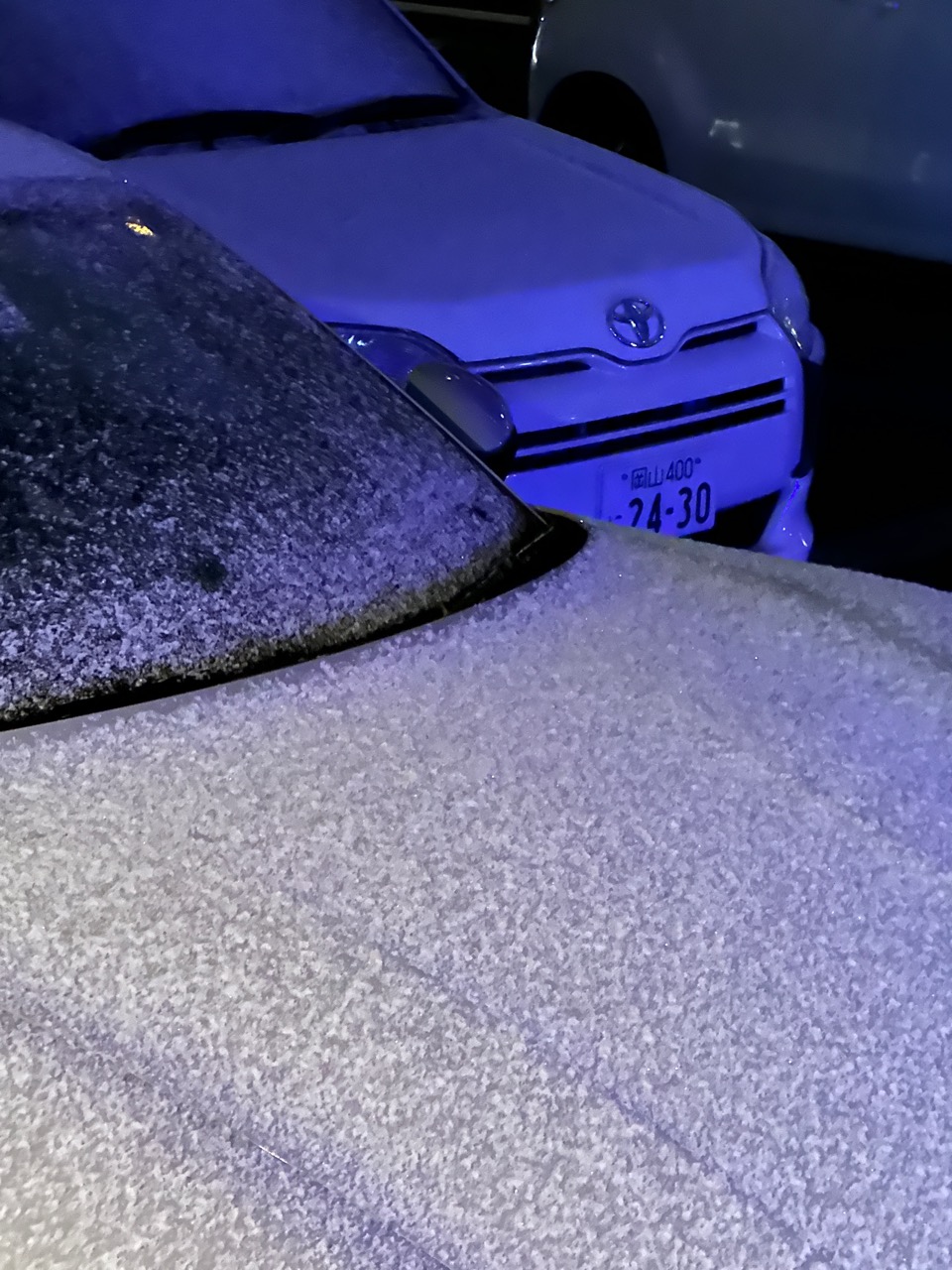 昨日は珍しくパラパラと雪が降り、夕方には車にうっすら雪が積もっていました。