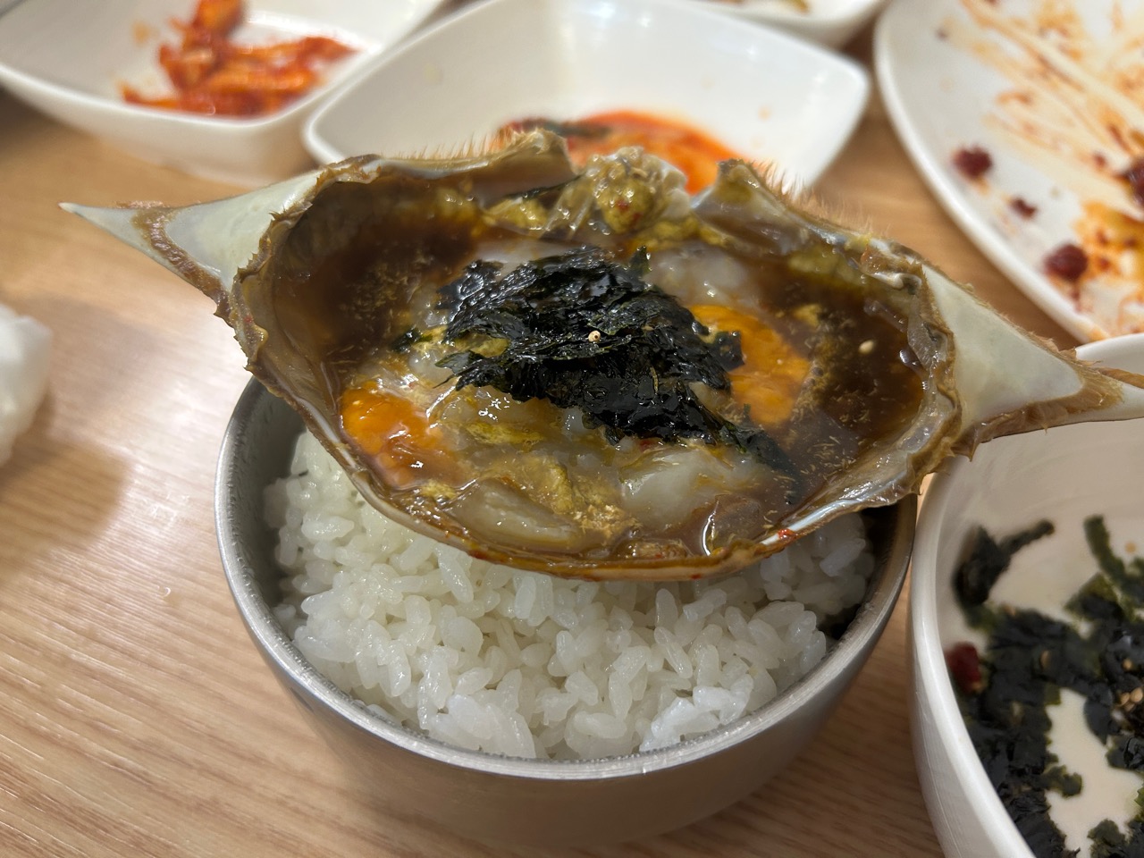 カニの味付けが自分に合っていて、パンチャンも美味しいんです。
