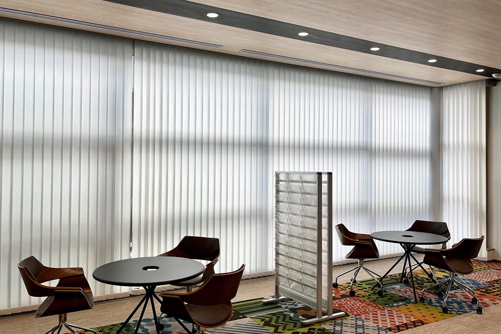 さらに、取り付けが簡単で耐屈曲性、耐光性に優れ、帯電防止加工で汚れが付きにくいためメンテナンスが容易。はねを閉じた状態でも明るいためプライバシーを守ります。工場や超高層ビルなど、多くの施設で導入されています。